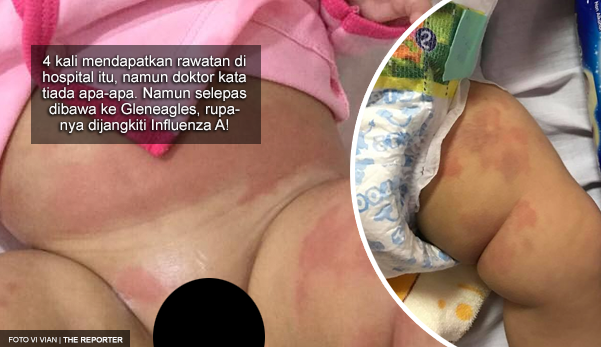 “Dia dimasukkan air dan jalani ujian darah. Hasil keputusan ujian darah menunjukkan bayi saya dijangkiti Influenza A!